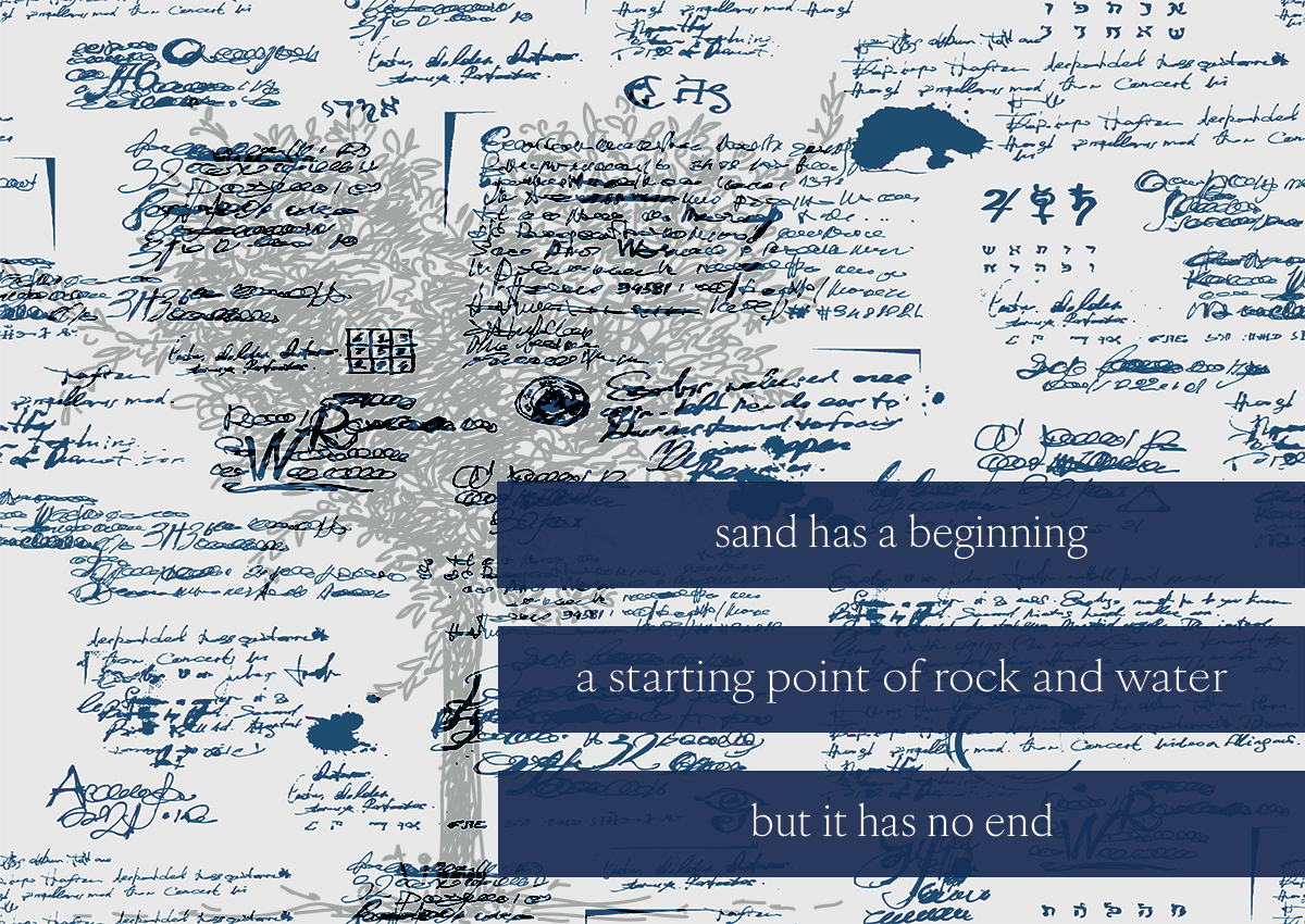 It doesn’t take long really—sand has a beginninga starting point of rock and waterbut it has no endwhether it be the pestle and mortar of the oceanor the insistent... Read more.