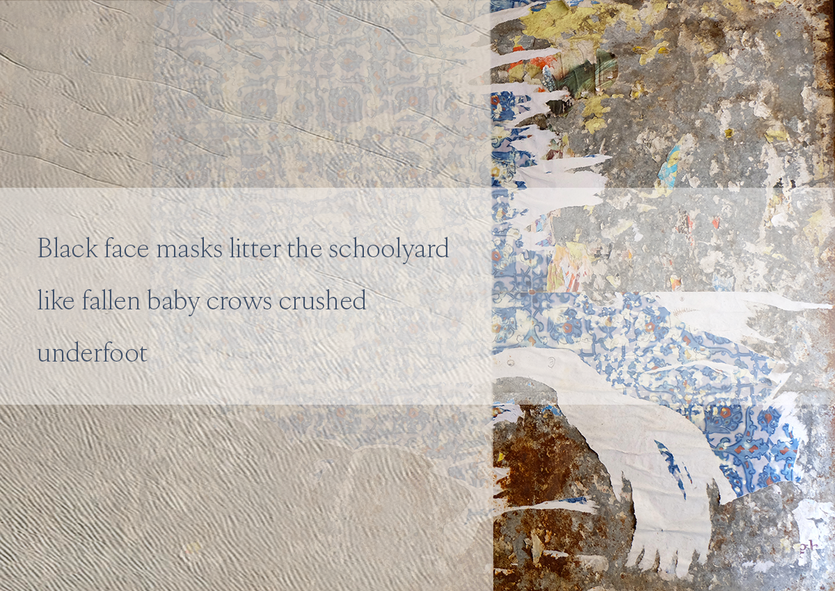 Black face masks litter the schoolyardlike fallen baby crows crushed underfoot:cries silenced, hearts stopped.Mom’s thirst for air called out one last time,desire... Read more.